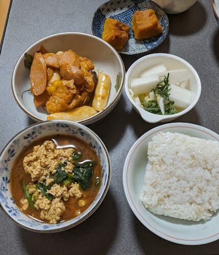 午前中、目がすこし痒かった。花粉なのかな、よくわからん。 魚肉ソーセージと油揚げの甘辛炒め、トッポギの餅とチーズ入り。出来上がりの汁気が想定より少なくなってしまった、油揚げに吸われた。おいしくできた! たまごとほうれん草のみそ汁。なんかよく…